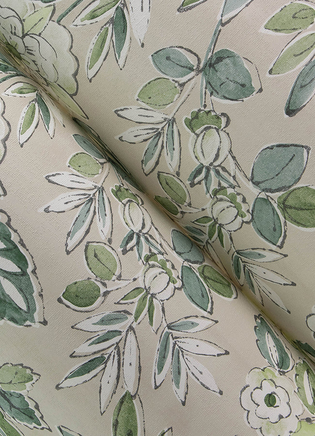 Twining vines are bedecked in voluminous floral blooms and delicate fruits, with free-flowing watercolors adding to the design's elegant charms.