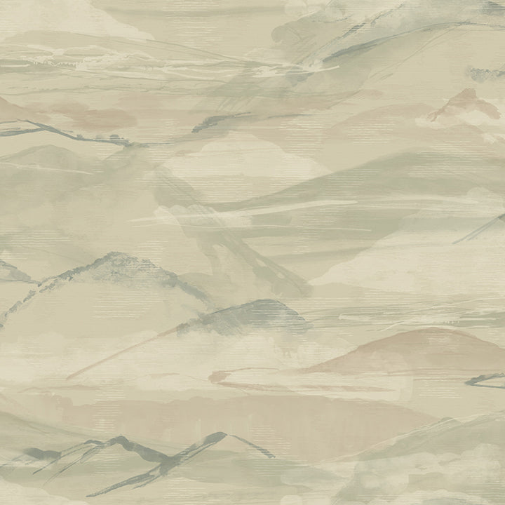 This hallmark of the iconic Montana landscape is artistically recreated on wallpaper. The illustrative design features a restricted palette of pale grey and cream, soft watercolor forms, and the feeling of mist drifting over the mountain range.