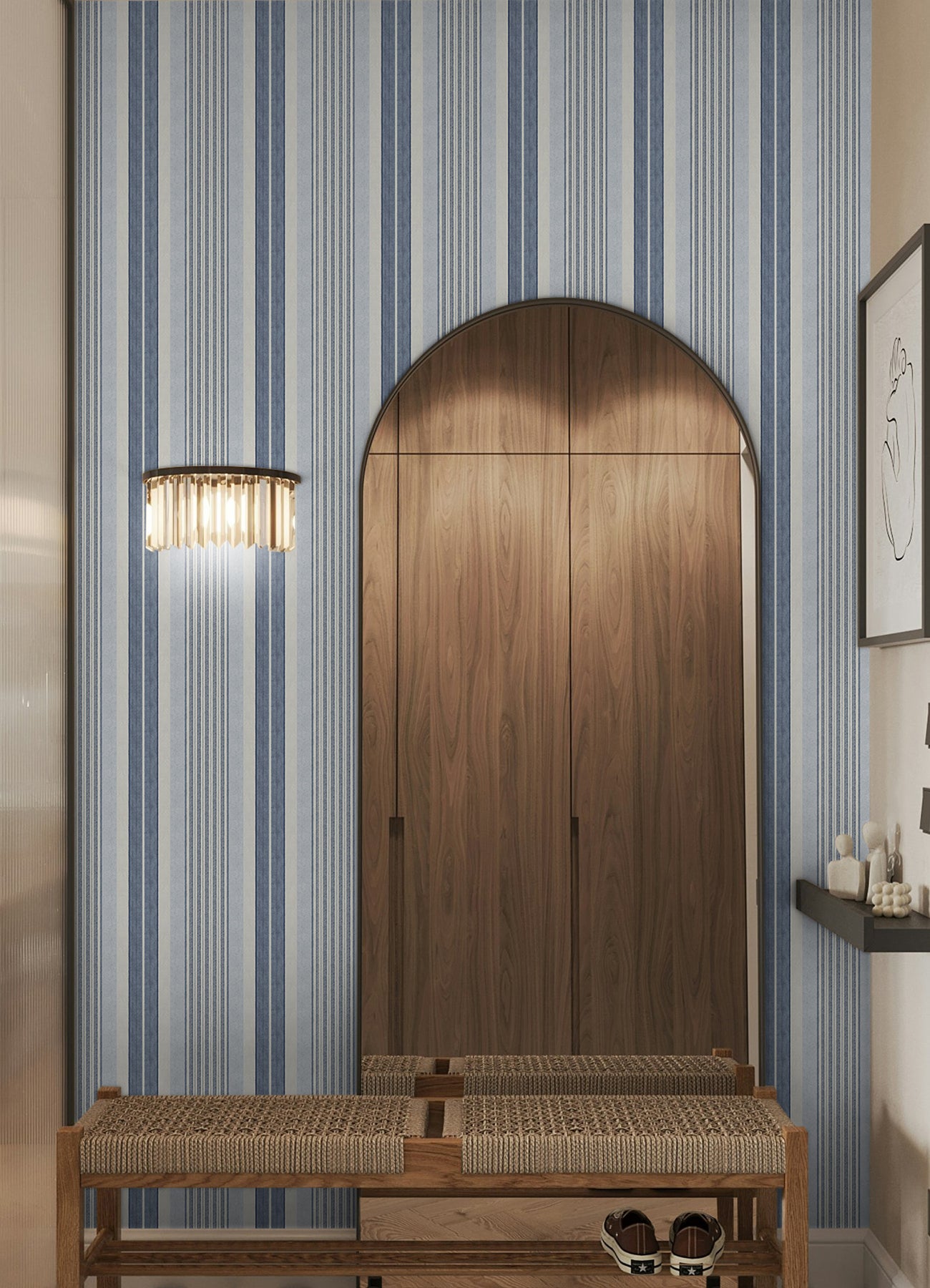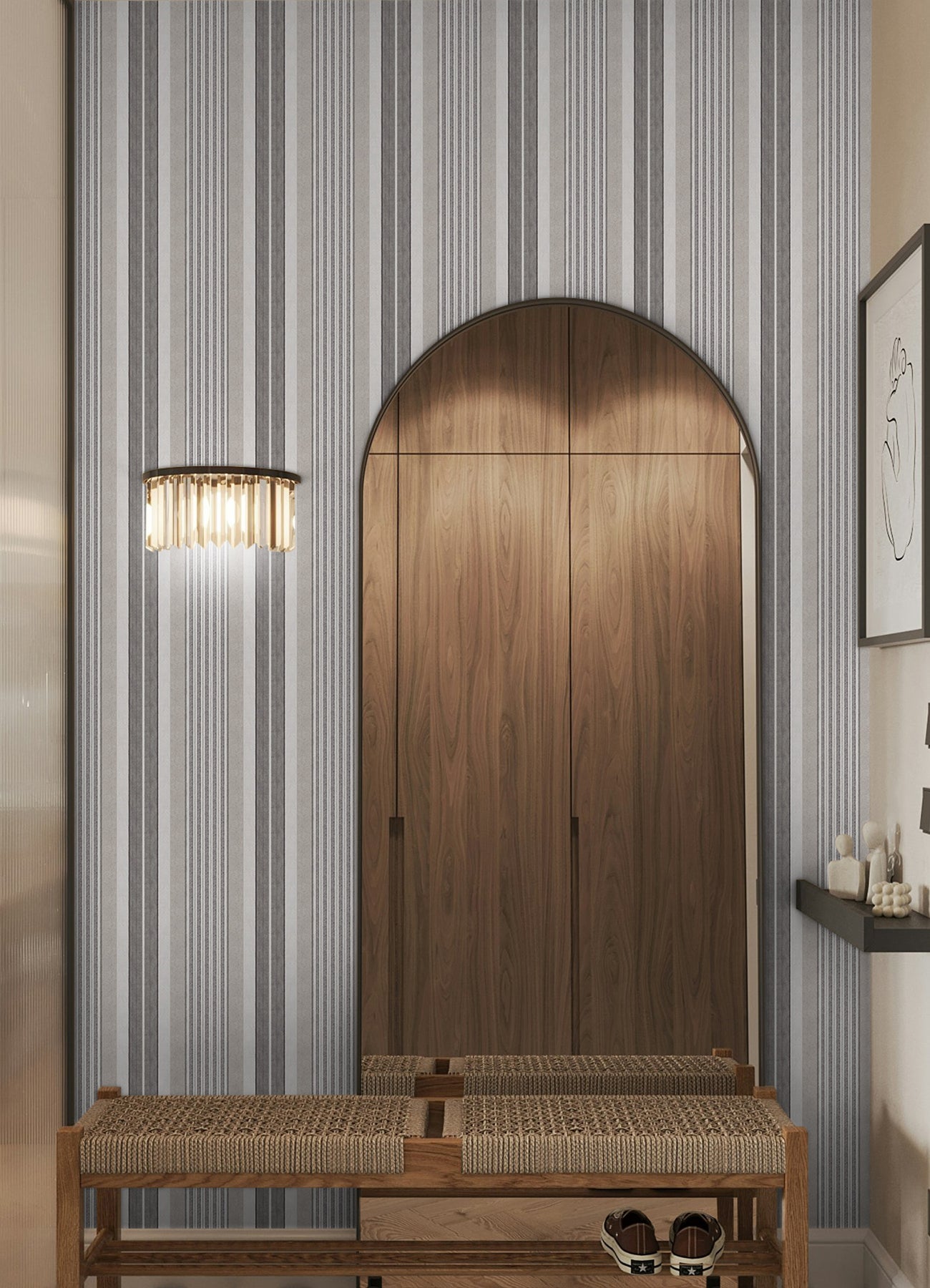 Elevate your interiors with the timeless appeal of a vintage-inspired stripe. This classic pattern from Waverly blends traditional charm with subtle elegance, featuring softly spaced lines in a refined red and neutral color palette. Perfect for creating a tailored look in dining rooms, hallways, or living spaces, this peel and stick wallpaper brings a sense of quiet sophistication to any room.