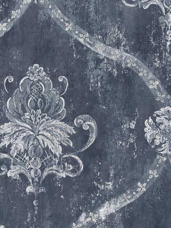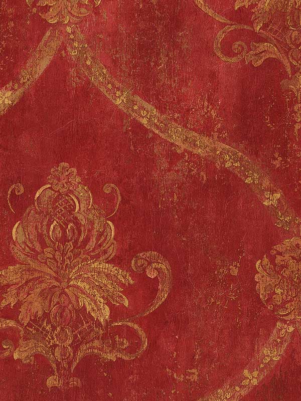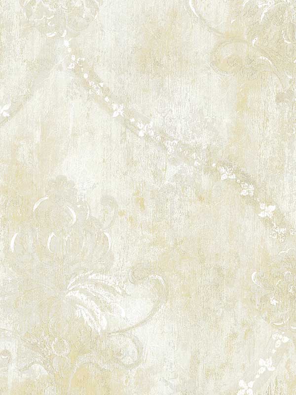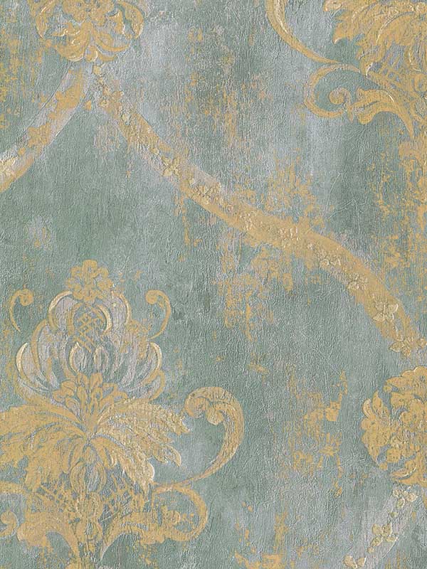 This beautiful paper has a weathered, vintage-looking background in multiple colors. The open trellis style damask also has an aged appearance.